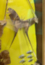 Eventually, our guide signaled our class over to the backroom, filled with cases of wing colors ranging from iridescent sky blue to the dull white of tissues. There was one large butterfly with pole-like extensions attached to its bottom wing (ala). I imagined that these extra attachments would weigh the butterfly down, but when I asked its purpose, our guide explained to us that they were dispensable distractions meant to mislead predators (depredadores). The dazzling creativity of Mother Nature never fails to amaze me.
